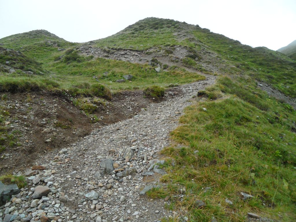 Bis zur Rosannabrücke ist der Weg in einem guten Zustand und man kommt gut voran. Wenige Meter später verwandelt er sich in einen brutal steilen und verblockten Pfad, auf dem an Fahren nicht zu denken ist und selbst Schieben an einigen Stellen nicht mehr funktioniert.