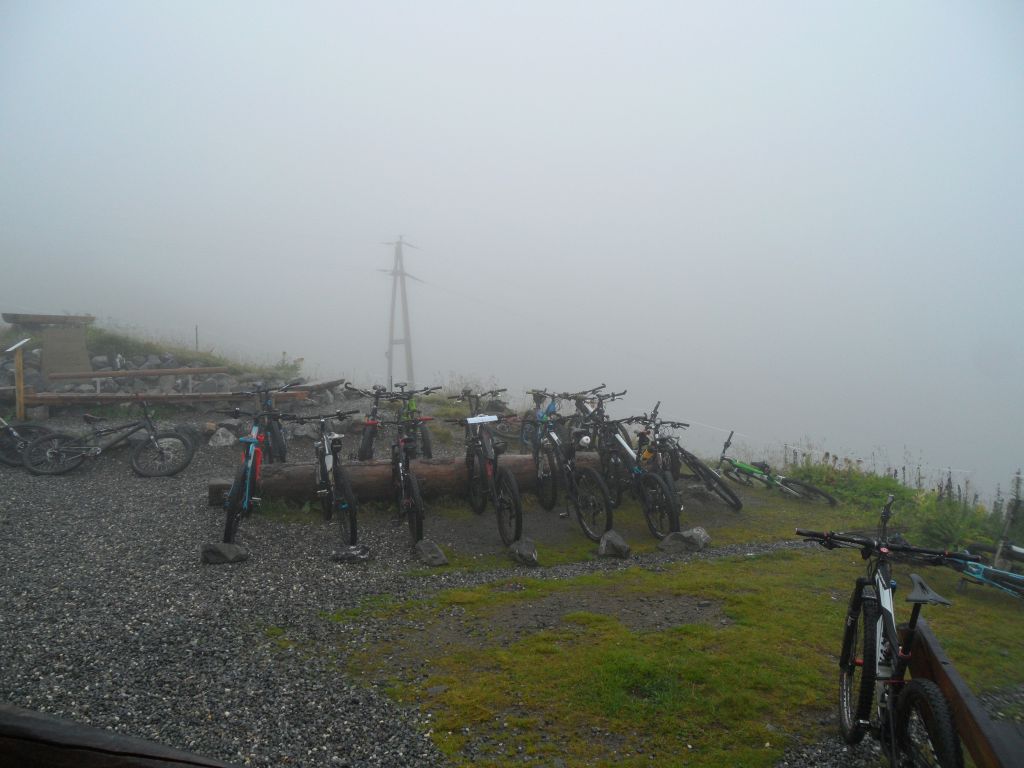 Es war saukalt und nass. Überall auf der Terasse und dem Vorplatz lagen wild verstreut Mountainbikes, von ihren verzweifelten Besitzern auf der Flucht vor Frost und Regen schutzlos zurückgelassen.