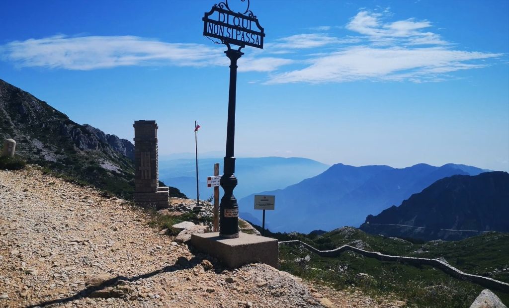 Wir erreichten nach einem wohltuend schattigen ersten Kilometer den Parkplatz an der Bocchetta Campiglia. Hier gibt es ein Museum und den Eingang in die Strada delle 52 Gallerie. Wir widmeten dem Ganzen zu wenig Zeit und müssen deshalb ohne Bikes noch einmal hierher zurückkommen.