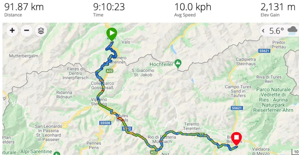 Wir machten Mittag in Sterzing und zogen dann den Rest der Etappe, immerhin noch 57 Kilometer praktisch in einem Strich durch.