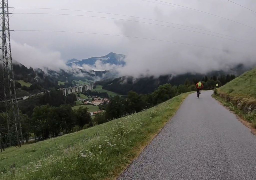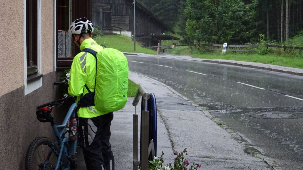 Es war Freitag. So kurz vor dem Wochenende mussten die Alpen wohl noch einmal gründlich gewaschen werden. Es goss und die ersten Kilometer ging es stromaufwärts.