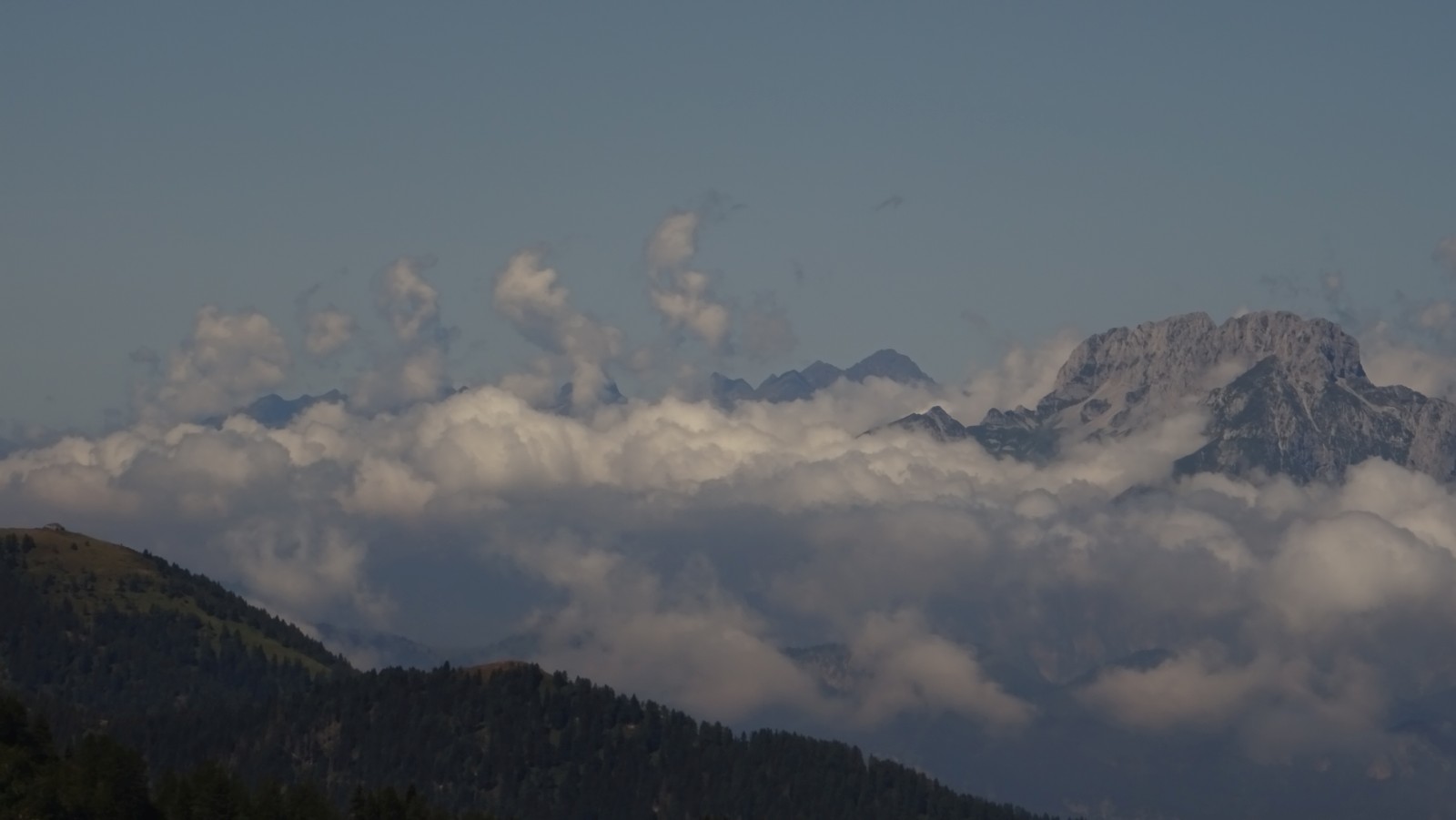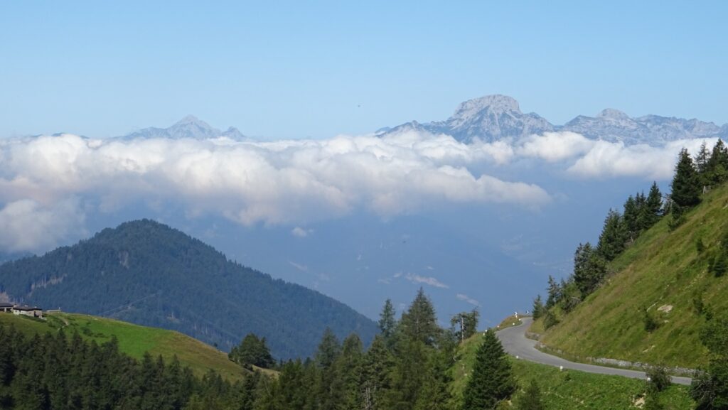Vom Ristorante Dosso Alto, wo wir eine gemütliche Pause hatten, bis zum gleichnamigen Pass muss man noch einmal 80 m hinauf. Eine Folter mit vollem Magen und unmotivierten Beinen aber schon wieder eine Leckerbissen für das Auge.