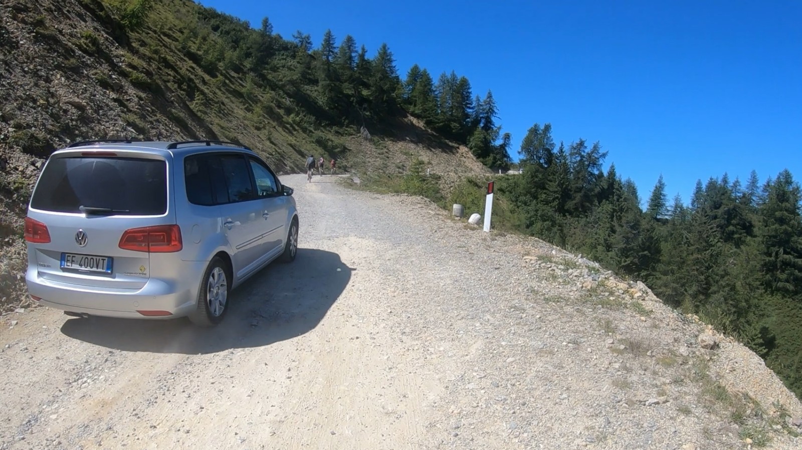 Der eigentliche Pass hat aus unserer Sicht diese Bezeichnung nicht verdient, steigt die Straße dahinter doch ungerührt weiter an. Auch wenn man direkt nach Anfo abrollen will, muss man zunächst noch über einen ebenfalls höheren Rücken. Da jedoch die ersten Meter auf dieser Strecke leichtes Gefälle aufweisen, ist das mit dem Namen juristisch wohl nicht anfechtbar.