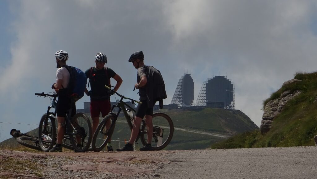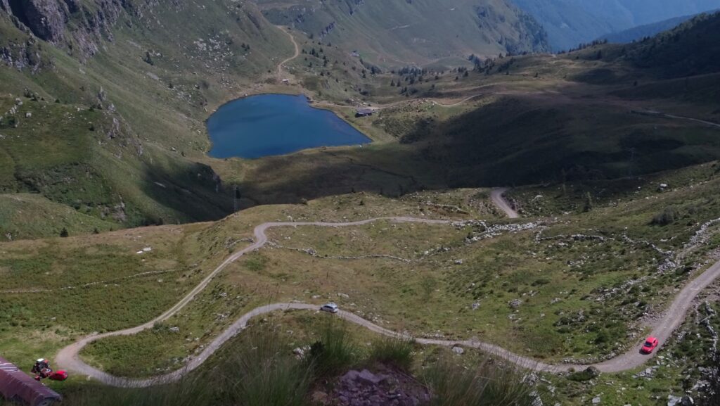 Pittoreske Weiher, Schäfchenwolken unter uns und die riesigen Radaranlagen am Dosso dei Galli, dem Auge wird ständig etwas geboten. Es müssen nicht immer Trails sein, um eine Etappe zu einem Leckerbissen zu machen.