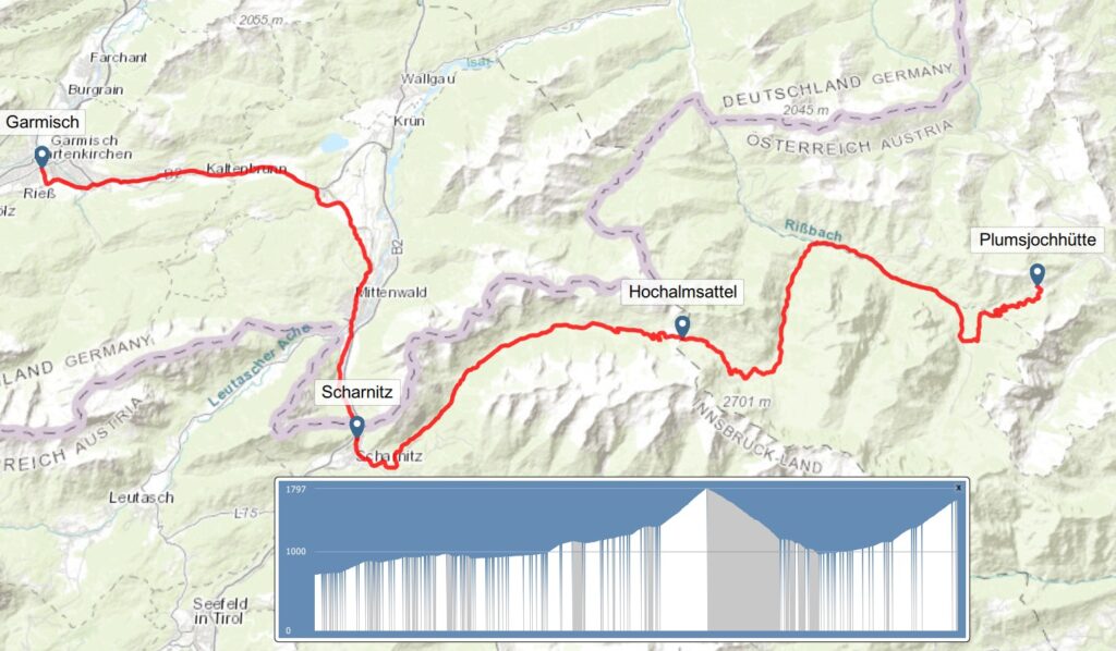 Direkt hinter Scharnitz geht es zunächst stramm hinauf, später spürt man über fast 7 km kaum etwas von der Steigung, bevor der Schlussanstieg zwar lang, aber nicht steil genug ist, einen aus dem Sattel zu zwingen.