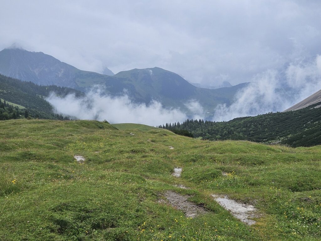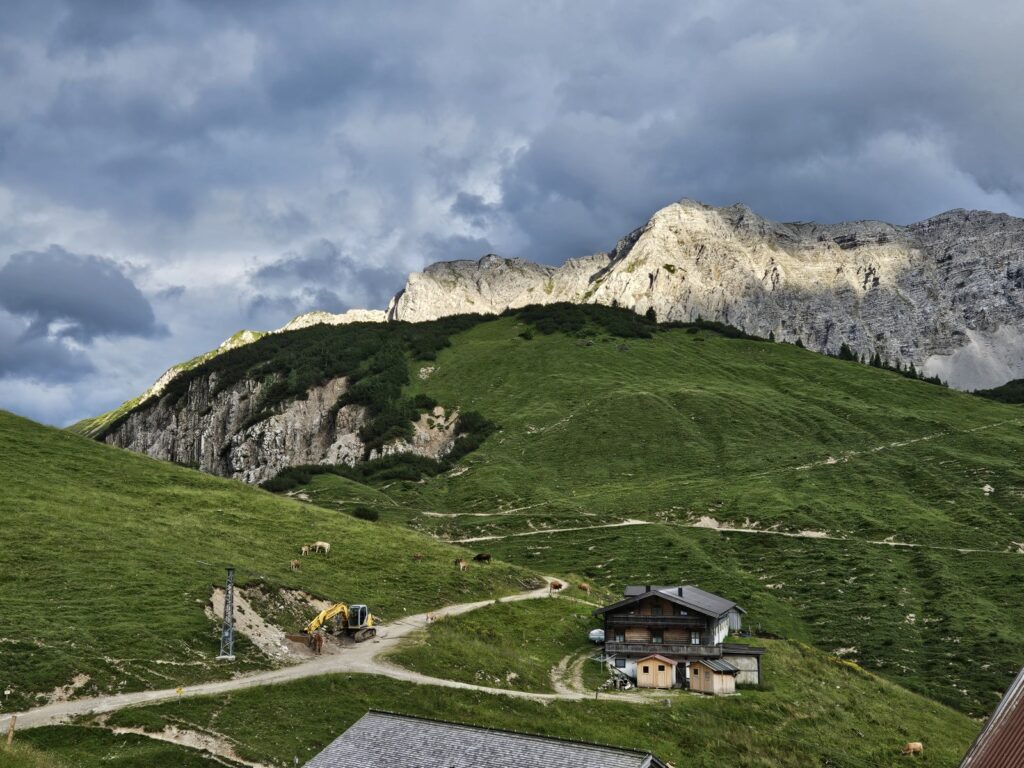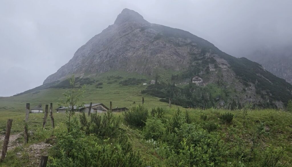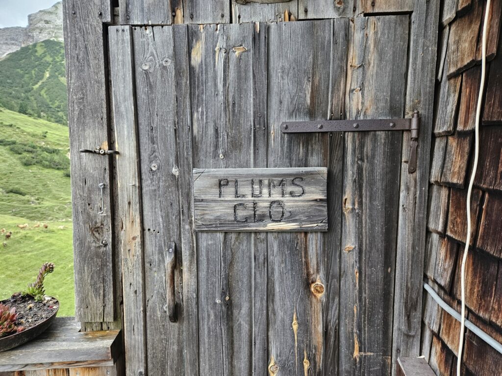 Für den Anstieg zur Plumsjochhütte habe ich anderthalb Stunden gebraucht. Es hätte deutlich schneller gehen können, aber unterwegs brach die Wolkendecke auf und der Regen suchte sich ein anderes Opfer. Eine gute Gelegenheit, meine Drohne ein wenig fliegen und filmen zu lassen.