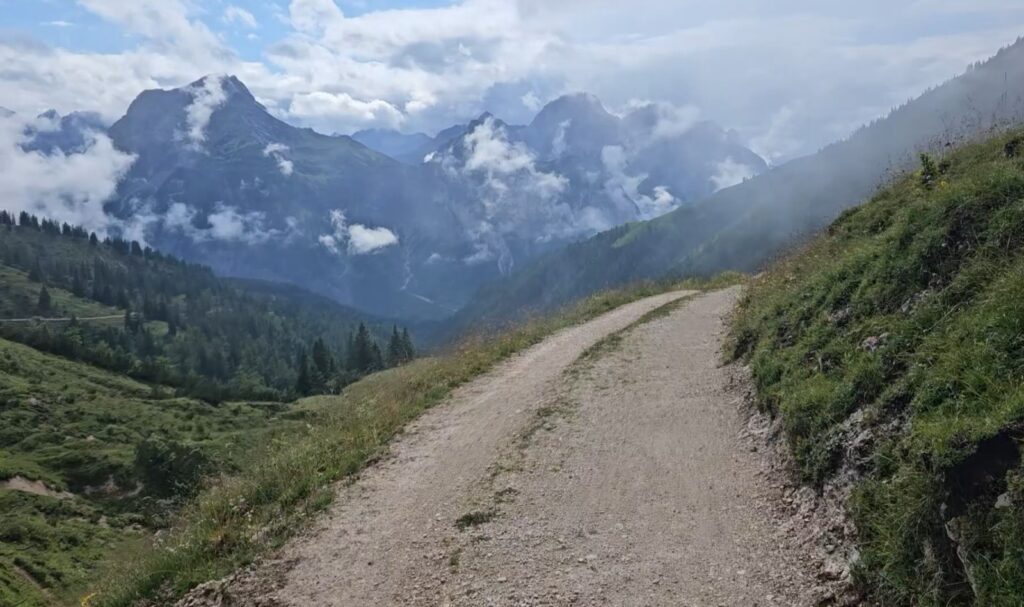 Der Wirtschaftsweg windet sich mit zahlreichen Kehren und Kurven und durchschnittlich 7 % Steigung über 7 km durch Wald und an Almen entlang bis zur Hütte am immer noch grünen Joch. Die Rinder nutzen ihn vielfach als Lokus, vielleicht um dem Namen des Passes gerecht zu werden.
