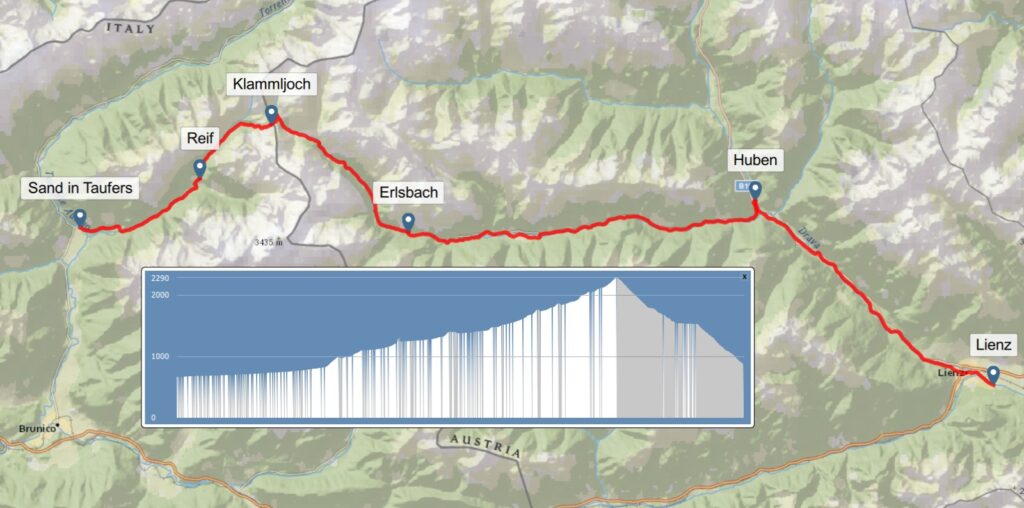 „Bruneck – Antholz – Staller Sattel – Klammljöchl – Bruneck“ beschrieb er mir seine Tour. Bevor ich meine Bewunderung in Worte fassen konnte, saß er auch schon wieder im Sattel und verschwand ins Knuttental.
