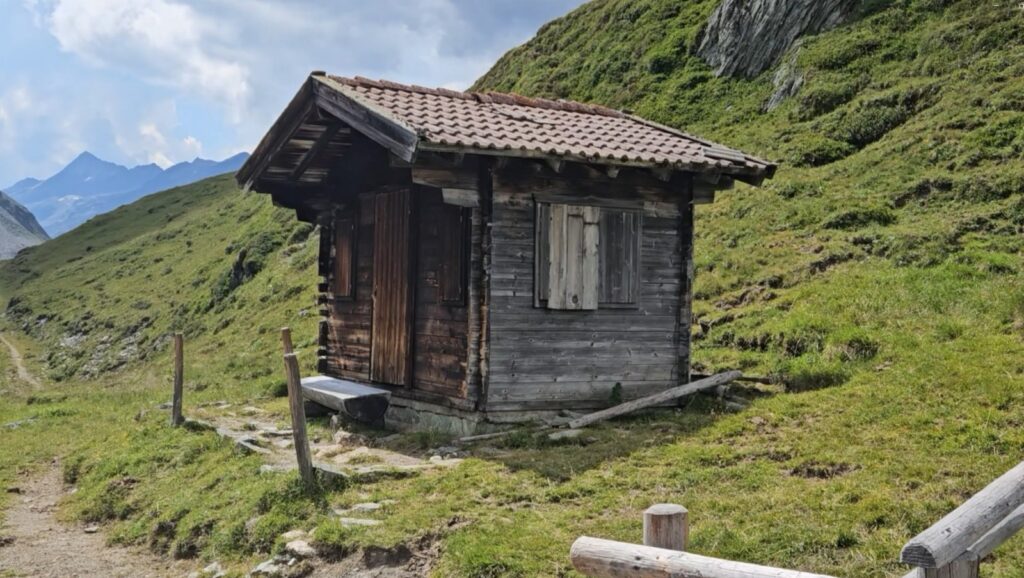 Ein Schnappschuss von der winzigen Holzhütte und dem Schrein für einen Arzt, der hier bei der Gamsjagd das Leben ließ und ich machte mich auch auf den Weg.