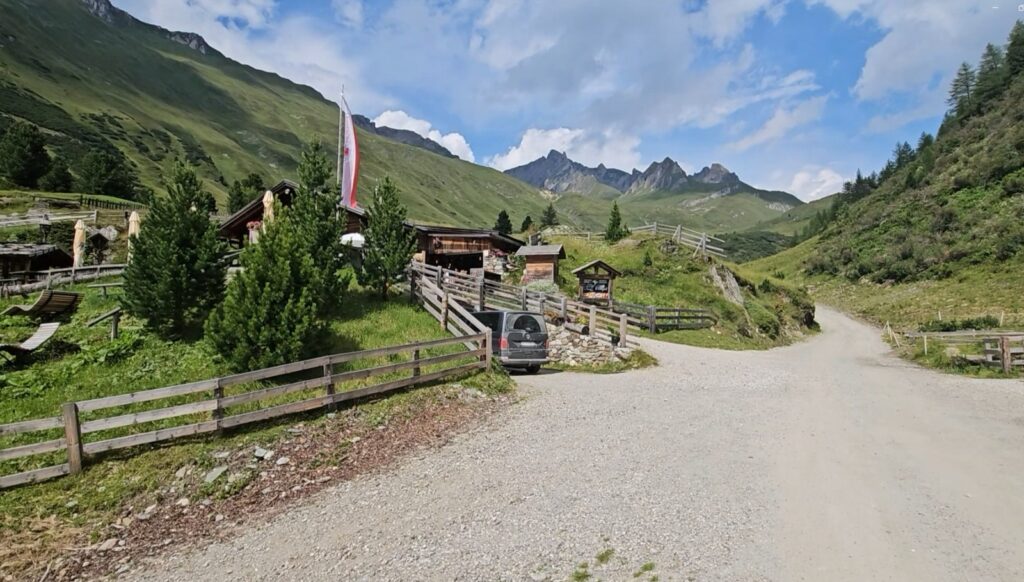 Eine Schranke versperrt den Autos den Weg in den Nationalpark Hohe Tauern. Die Gasthöfe Patsch und Oberhaus sind aber trotzdem noch auf Teer erreichbar.