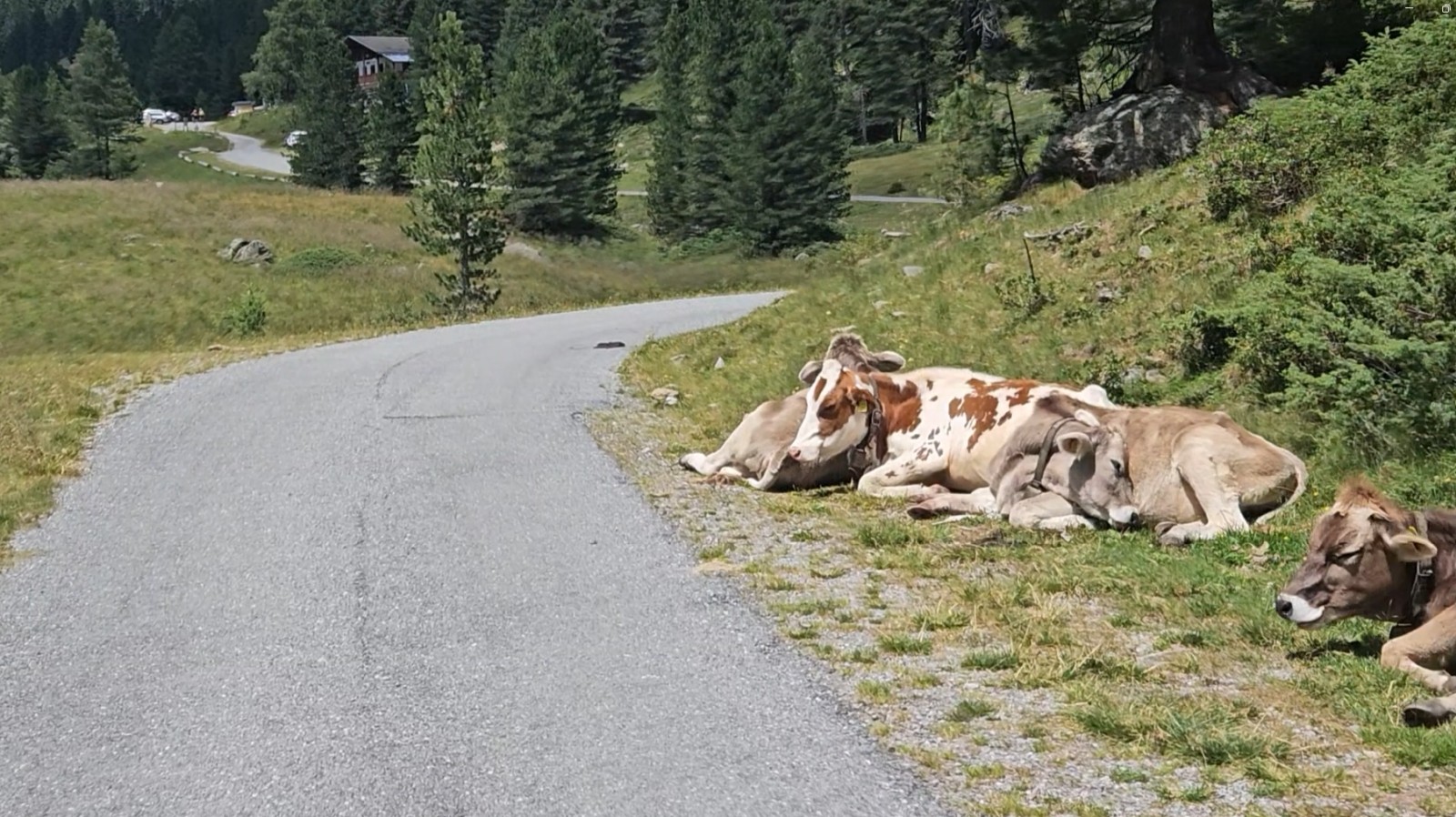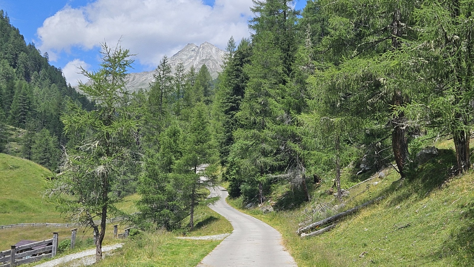 Es wurde steiler und meine Kohlenhydratspeicher leerten sich spürbar. Hinter der Patscher Hütte, zwischen zwei Kehren schob ich ein wenig um Körner zu sparen.