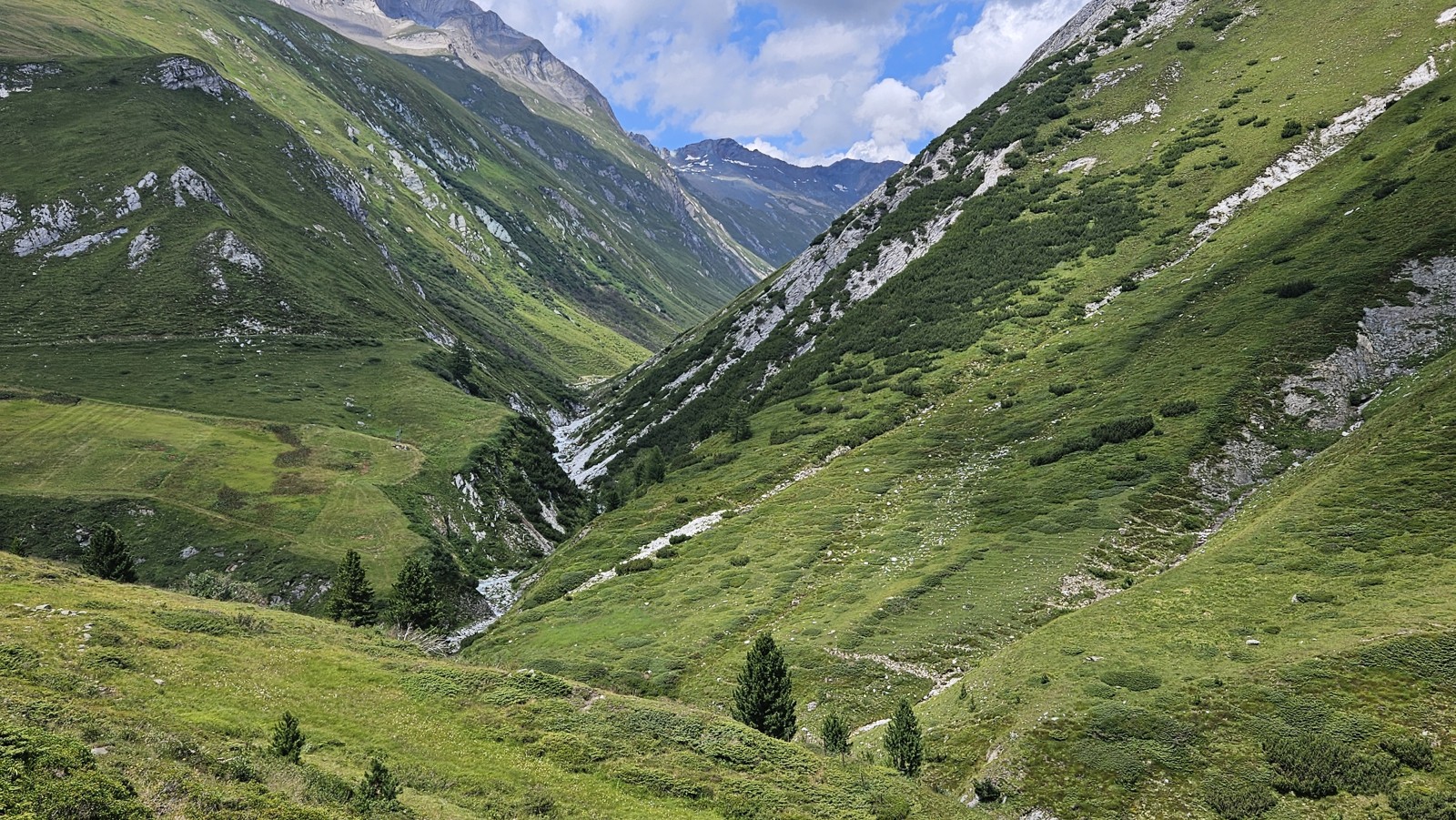 Vom Klammljöchl hat man einen guten Blick ins Tal. Kein Gewitter weit und breit.