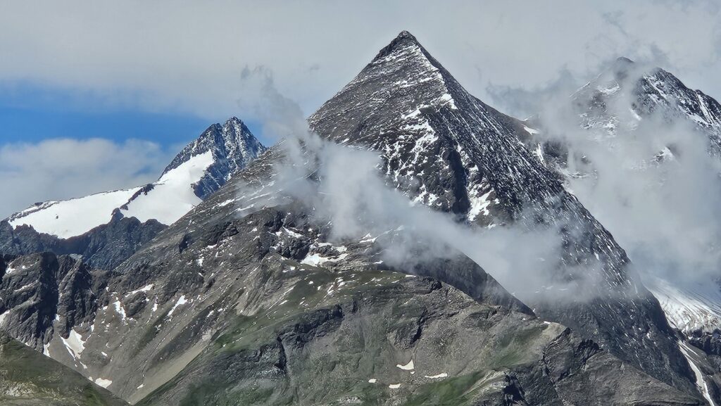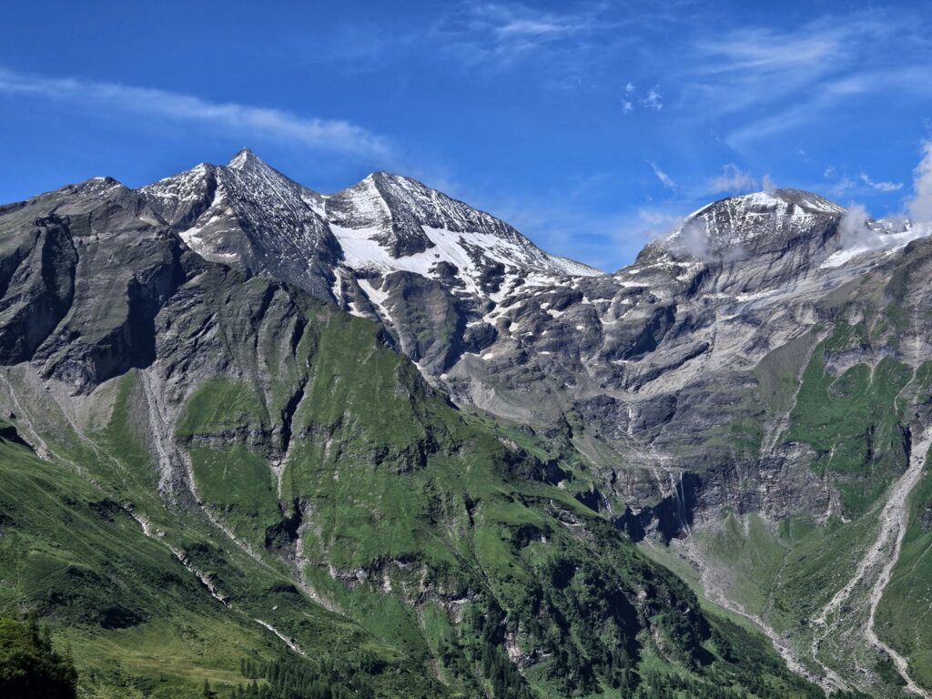 Zum ersten Mal konnte ich den Großglockner sehen, etwas unscheinbar hinter dem vermeintlich mächtigeren aber mehr als 500 m niedrigeren Sinnwelleck.