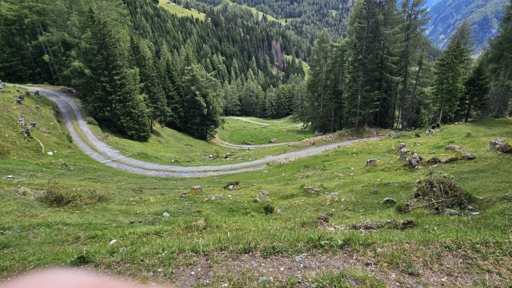 Egal, nur 600 m weiter beginnt die alte Großglocknerstraße, ein meistens gut befestigter Wirtschaftsweg, ab der halben Strecke nach Heiligenblut sogar geteert.