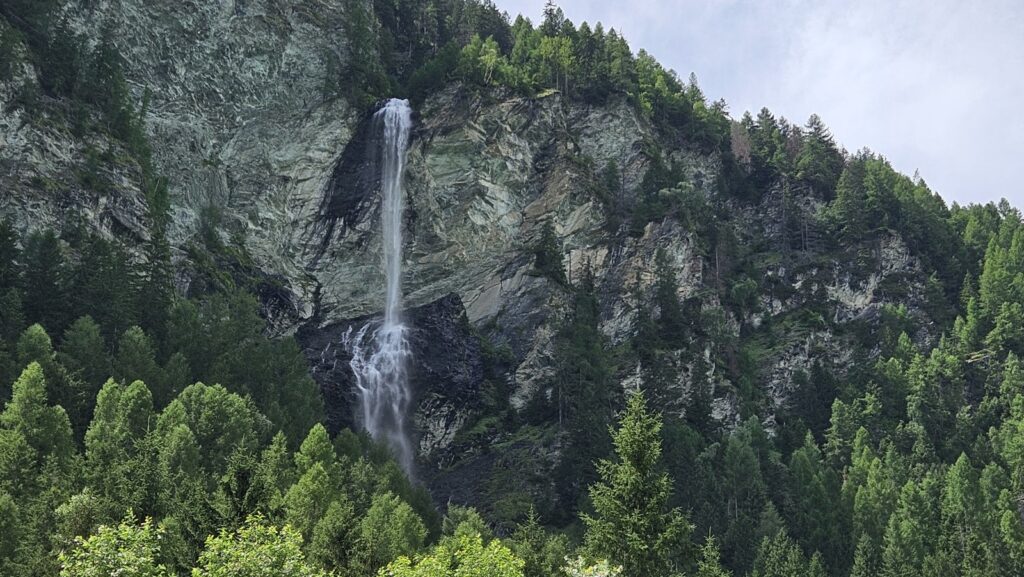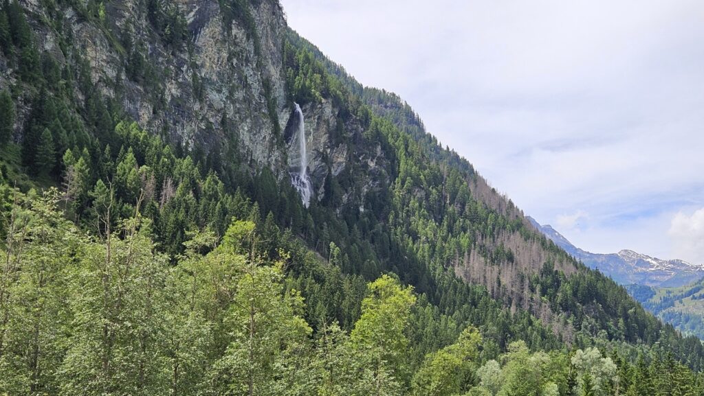 Bei Ferleiten verlässt man den Talboden. Der Walcher Bach am gegenüberliegenden Hang beeindruckt mit zwei imposanten Wasserfällen auf seinem Weg zur Fuscher Ache. Es gibt da einen Wasserfallerlebnispfad, wenn Ihr mal ein Paar Tage hier verbringen wollt.